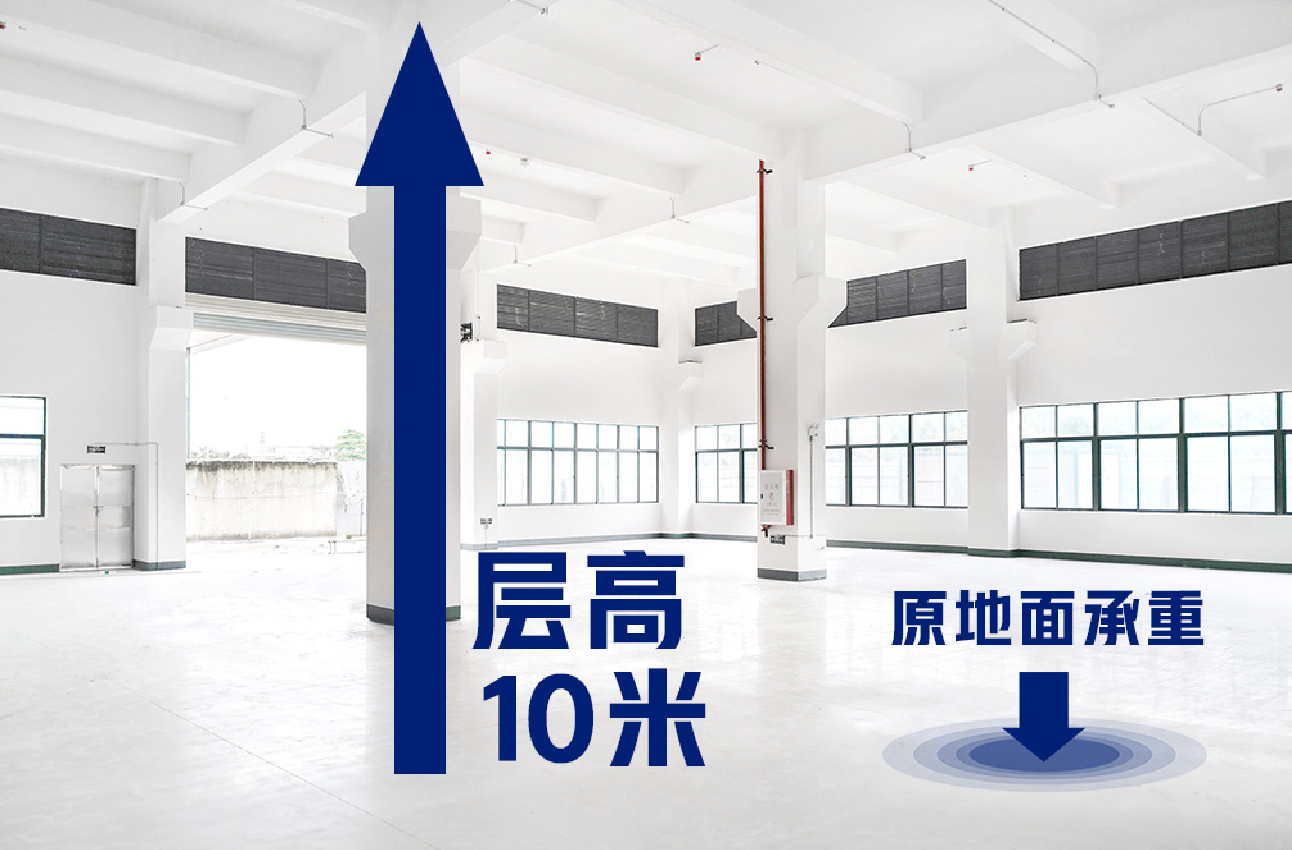 2#楼首层高至10米,原地面不限承重;楼上高至8米,承重1.5吨,为重型工业企业提供了理想的选择。